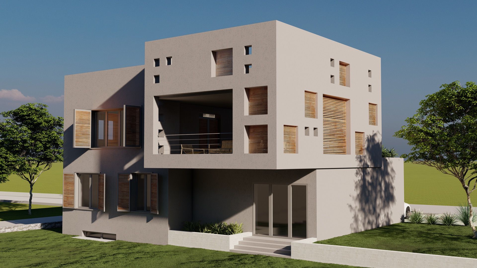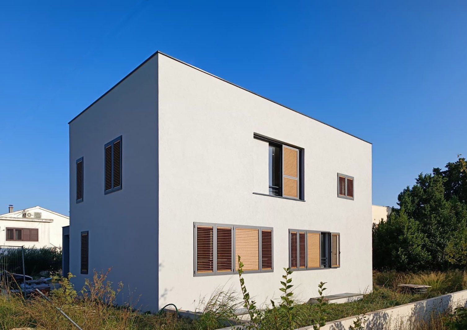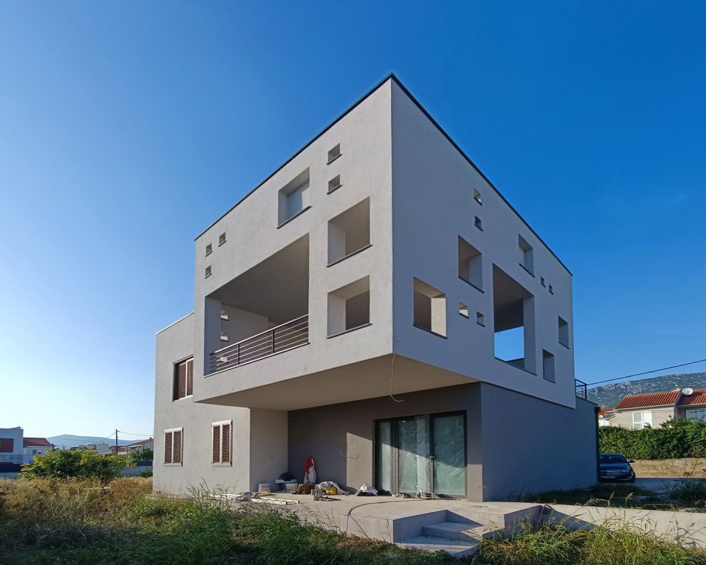 Obiteljska kuća K3 se nalazi na parceli drugi red uz more, u Kaštelima, a oblikovno se sastoji od tri volumena međusobno izmaknuta po dužoj osi. Južno pročelje je najizraženije, naglašeno velikim otvorima na stambenom dijelu, te velikim otvorom na volumenu lođe. Najnaglašeniji volumen je volumen lođe, koji povezuje dva zatvorenija