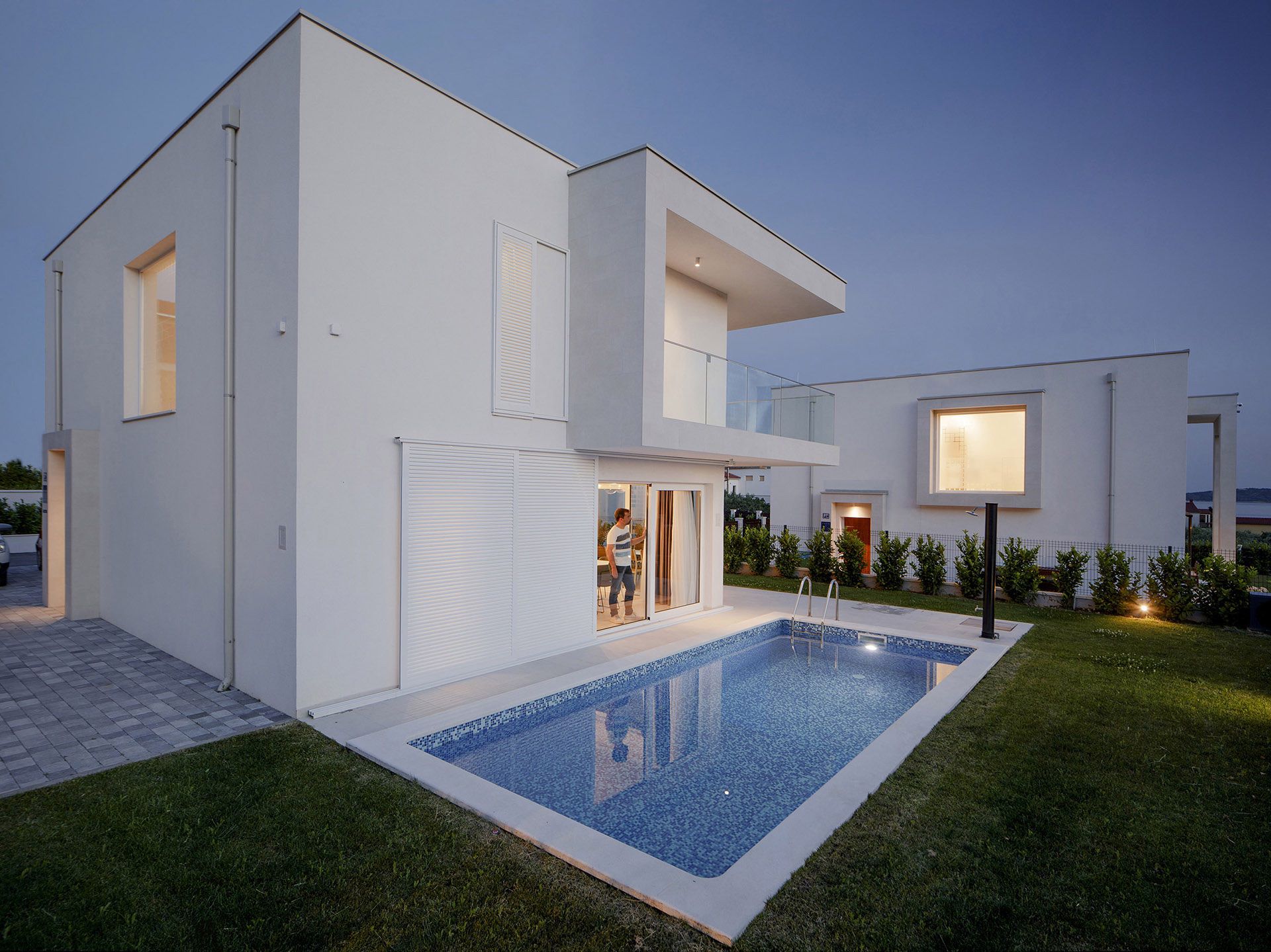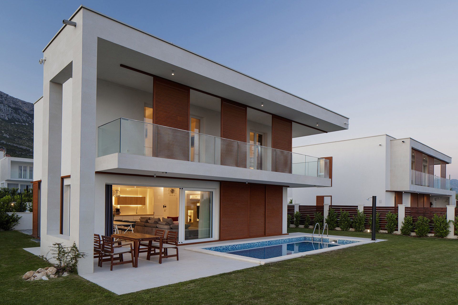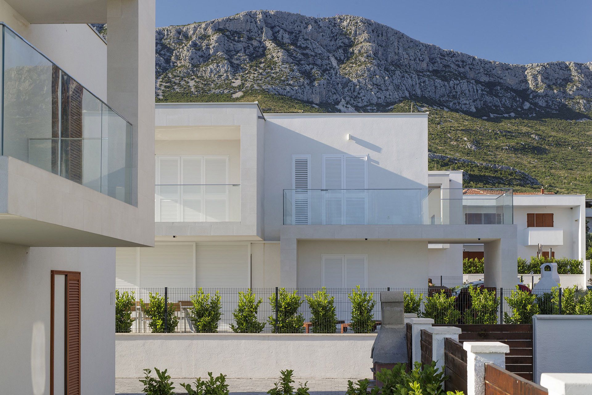 Kuće su oblikovane u funkciji kuće za odmor i sve je tome posvećeno. Fokus je na spoju vrta, bazena, terase, kuhinje, blagovaonice i boravka u jednu prostorno funkcionalnu cjelinu. To je osnova svake kuće – ugodni godišnji odmor, a sve drugo je nadgradnja. Ovisno o poziciji u naselju oblikovane su nadstrešnice i terase. Sve prostorije imaju južnu orijentaciju i uz pomoć promišljenih istaknutih dijelova dana im je privatnost i kadriran najbolji pogled.