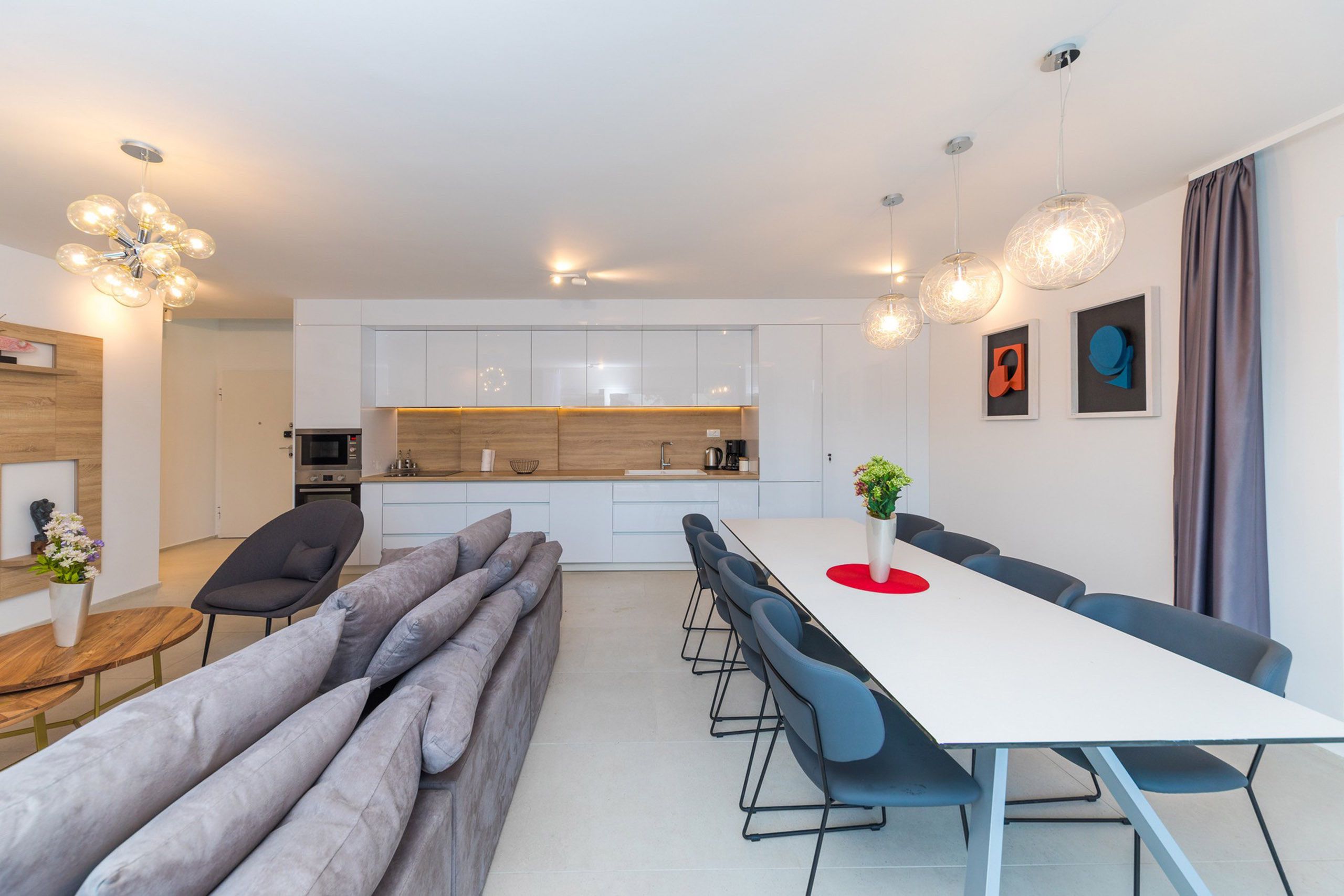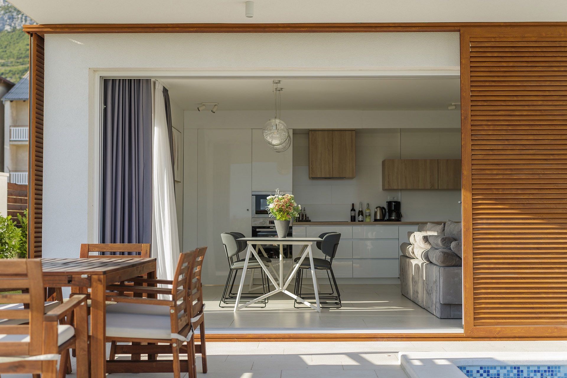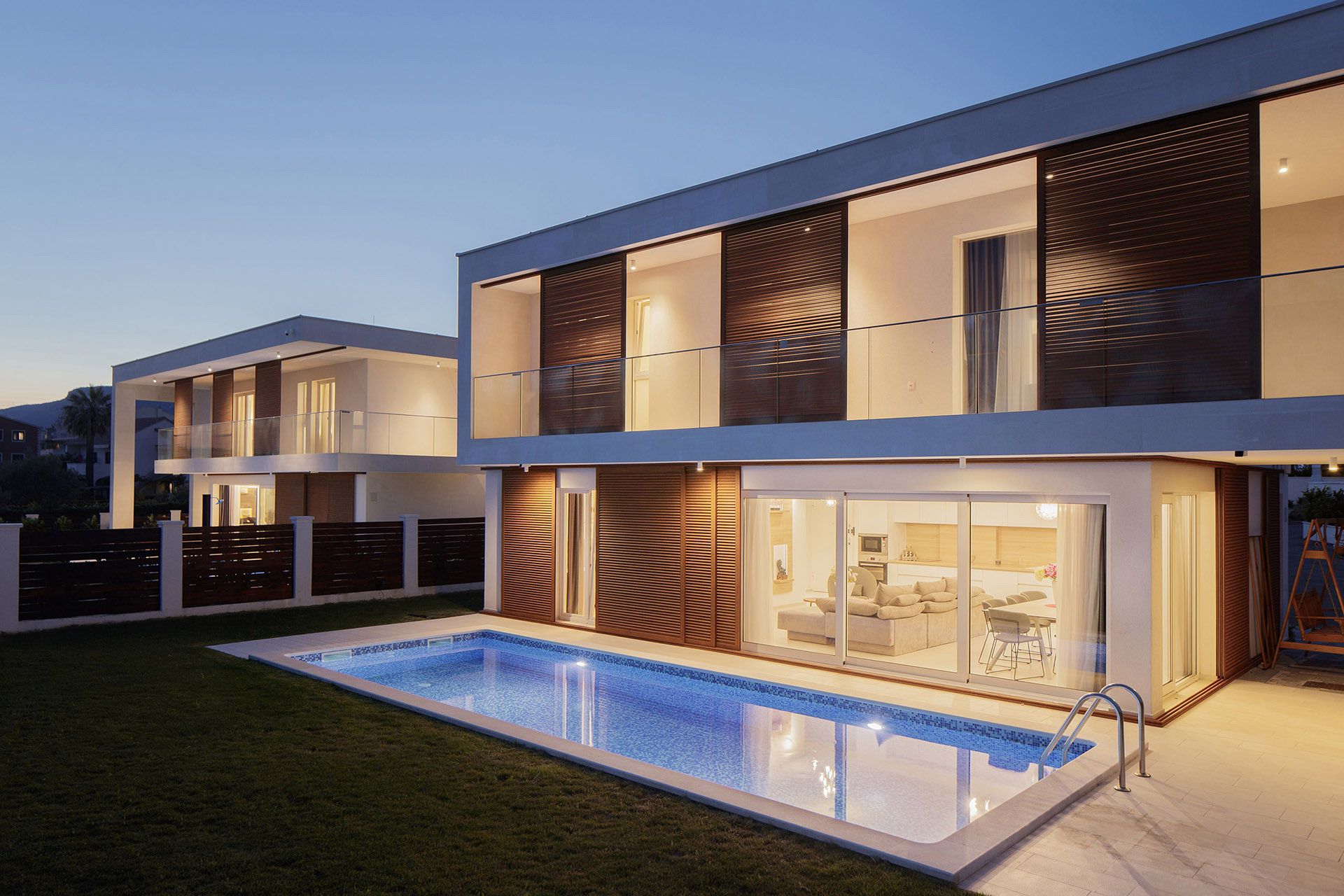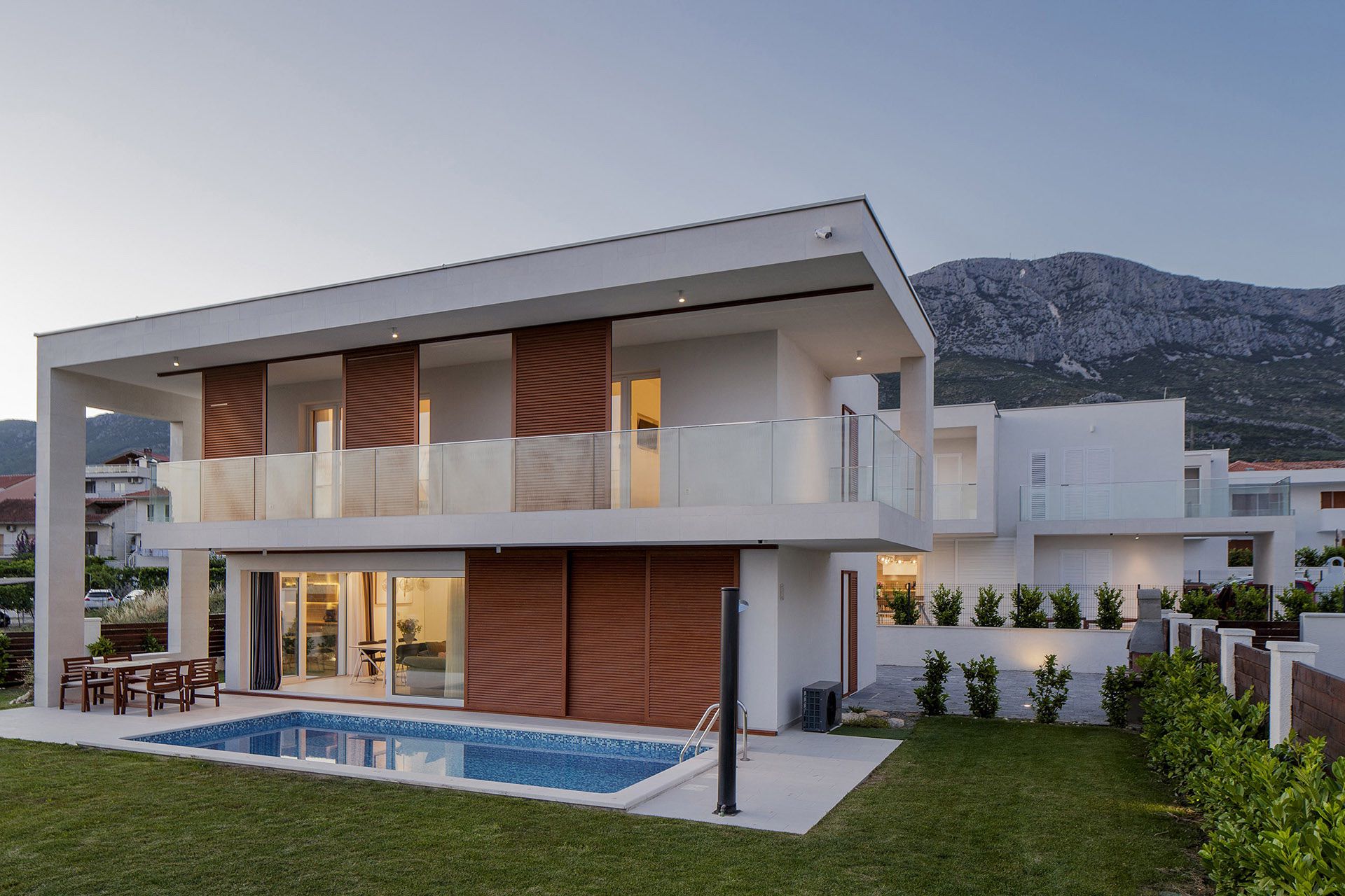 Kuće su oblikovane u funkciji kuće za odmor i sve je tome posvećeno. Fokus je na spoju vrta, bazena, terase, kuhinje, blagovaonice i boravka u jednu prostorno funkcionalnu cjelinu. To je osnova svake kuće – ugodni godišnji odmor, a sve drugo je nadgradnja. Ovisno o poziciji u naselju oblikovane su nadstrešnice i terase. Sve prostorije imaju južnu orijentaciju i uz pomoć promišljenih istaknutih dijelova dana im je privatnost i kadriran najbolji pogled.