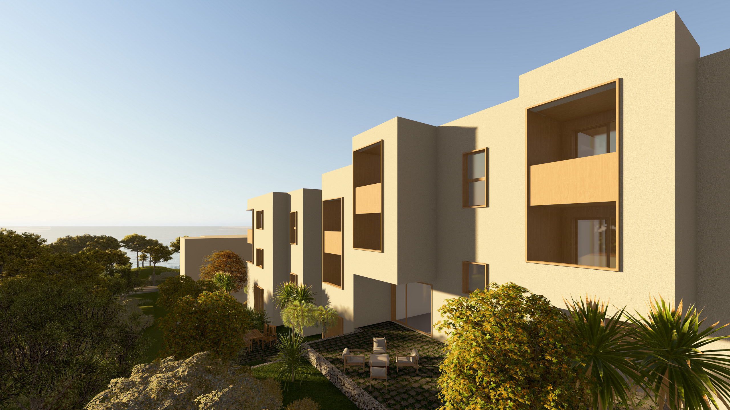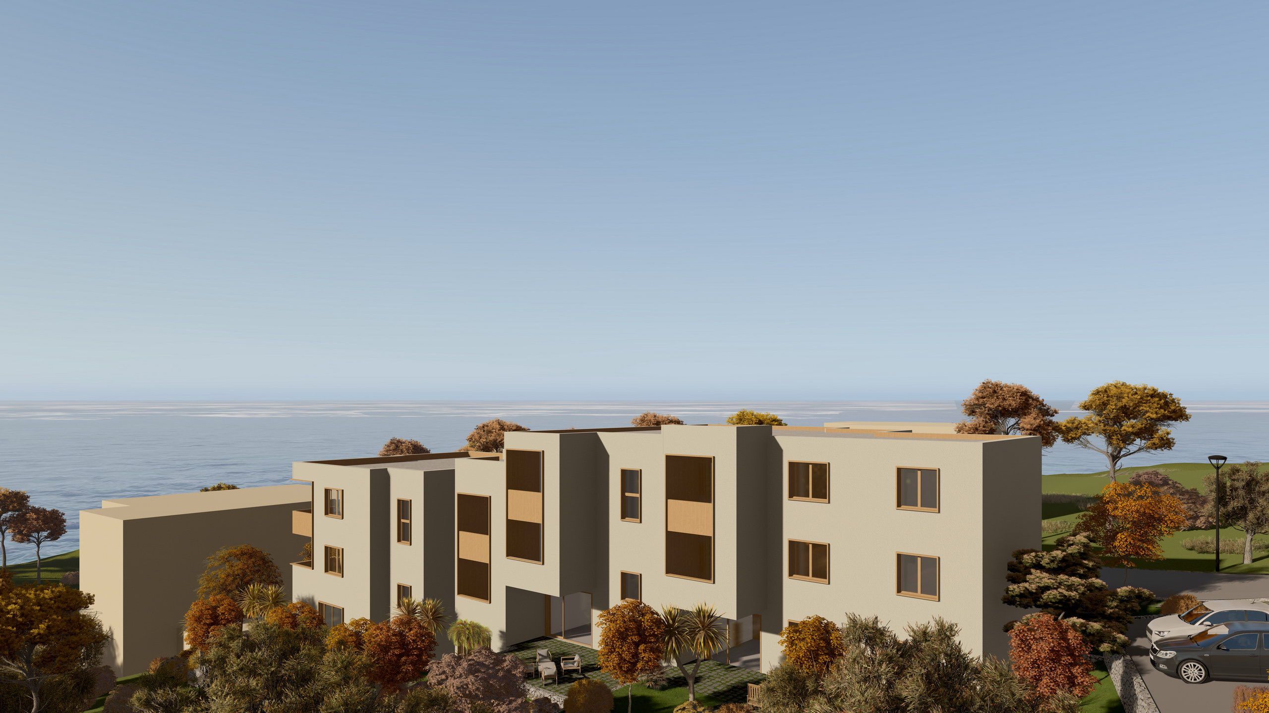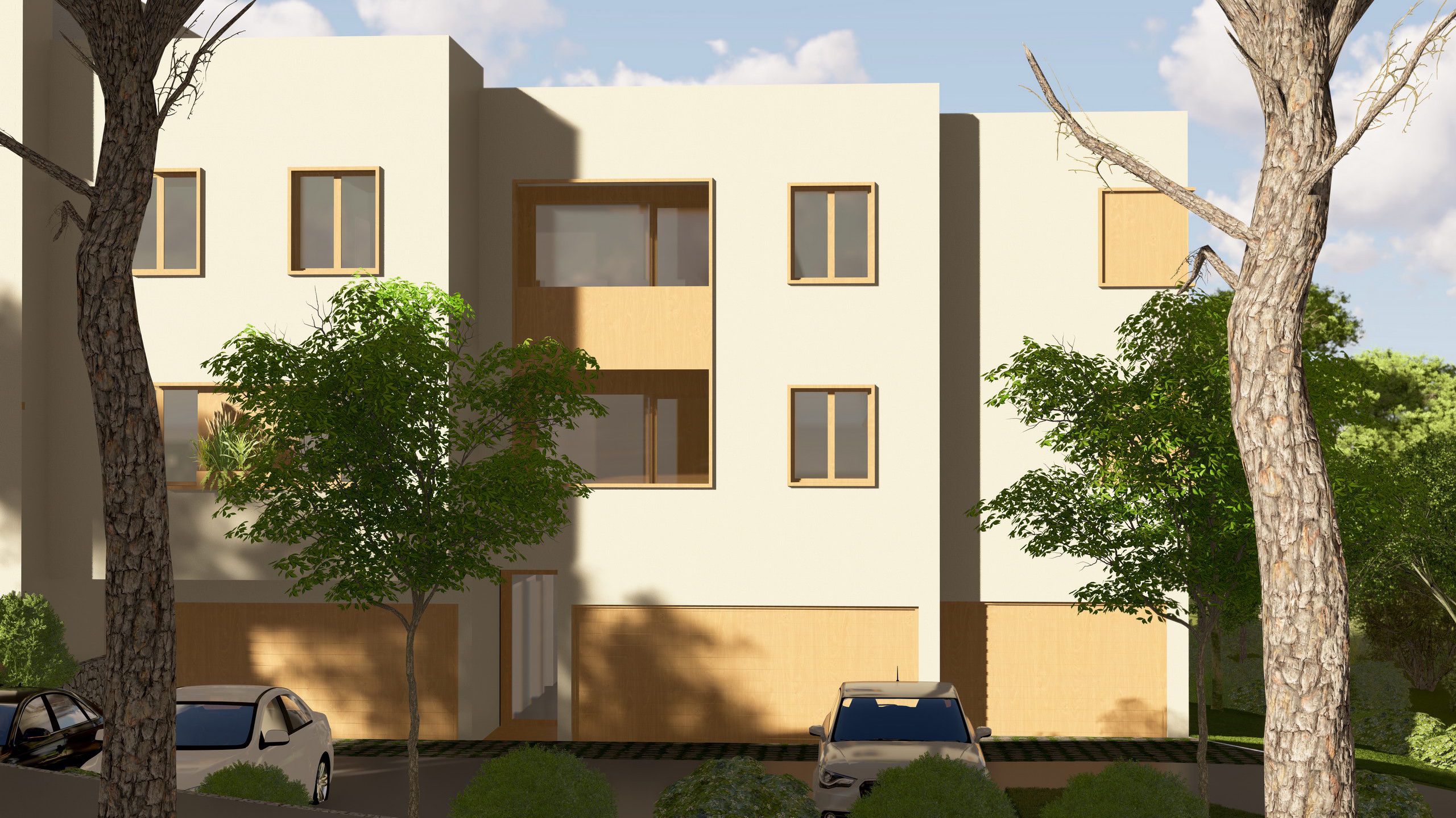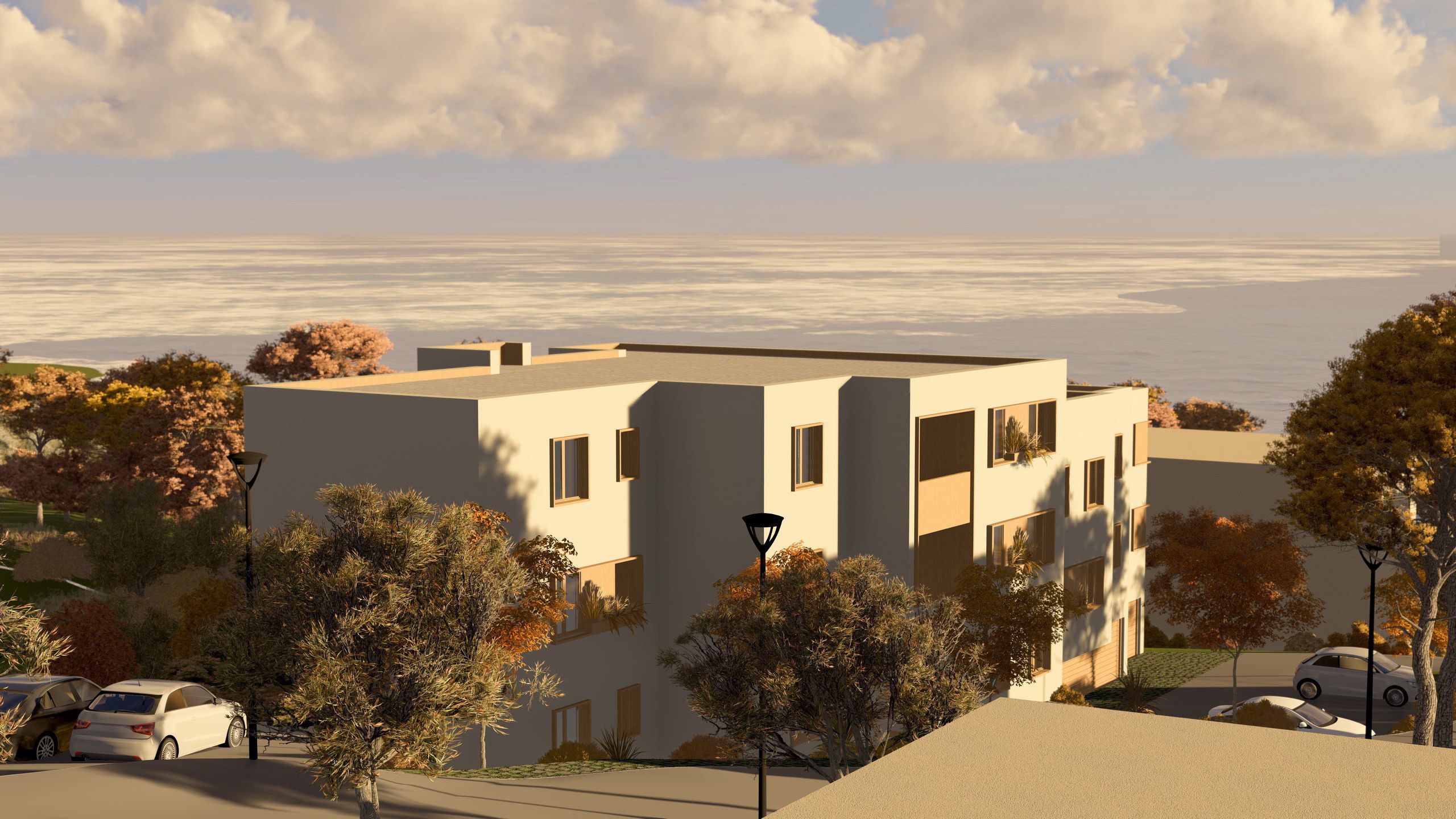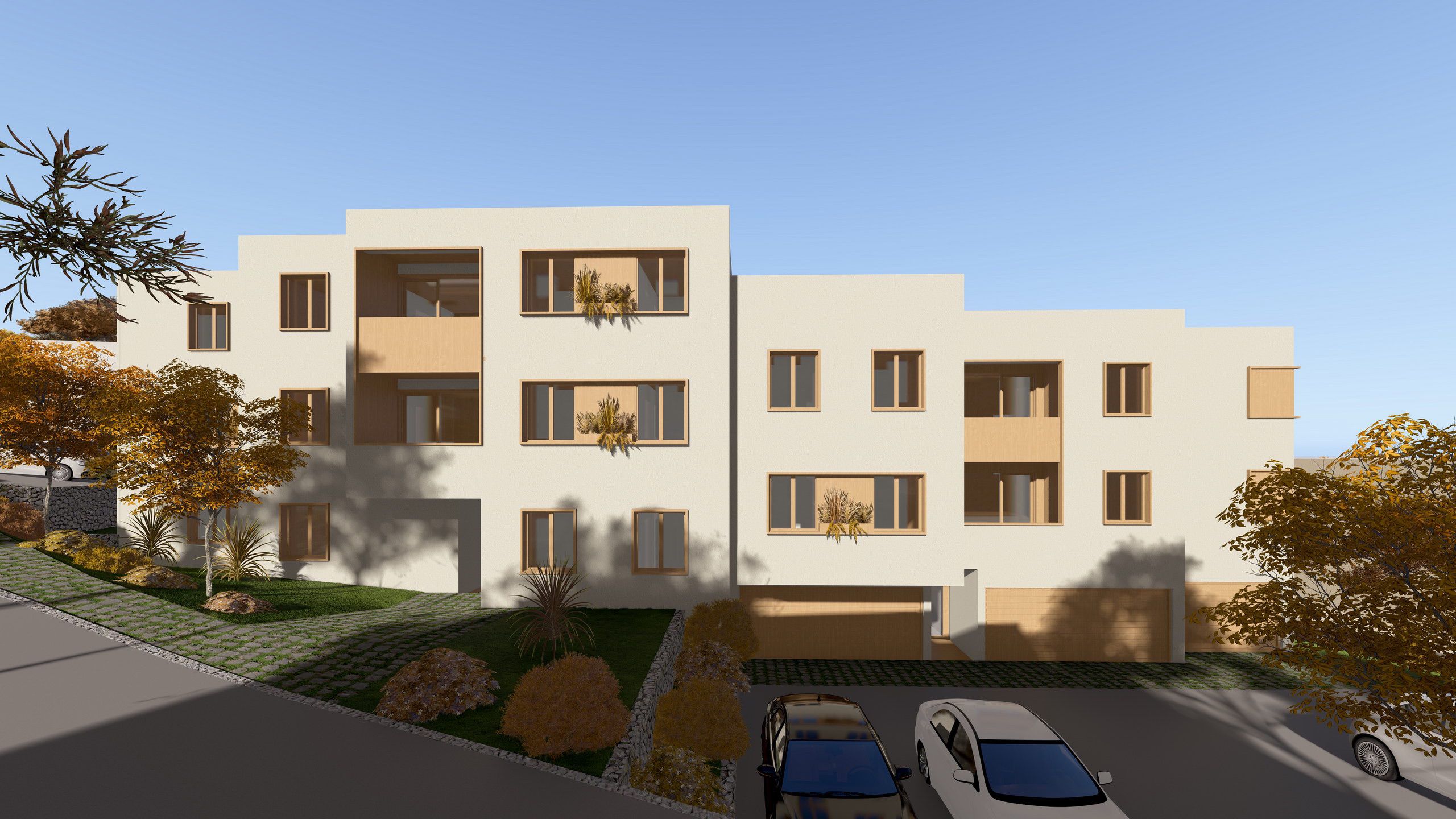 Višestambena zgrada je smještena tako da prati prirodni teren, a kod oblikovanja je naglasak na jednostavnosti pročelja sa lođama koje su istaknute izvan ravnine pročelja te mu daju blagu dinamiku. Dodatni element oblikovanja su okviri oko otvora koji povezuju elemente u cjeline.